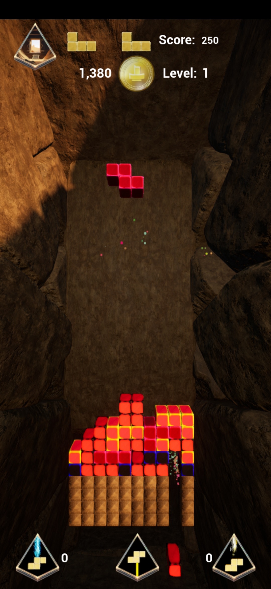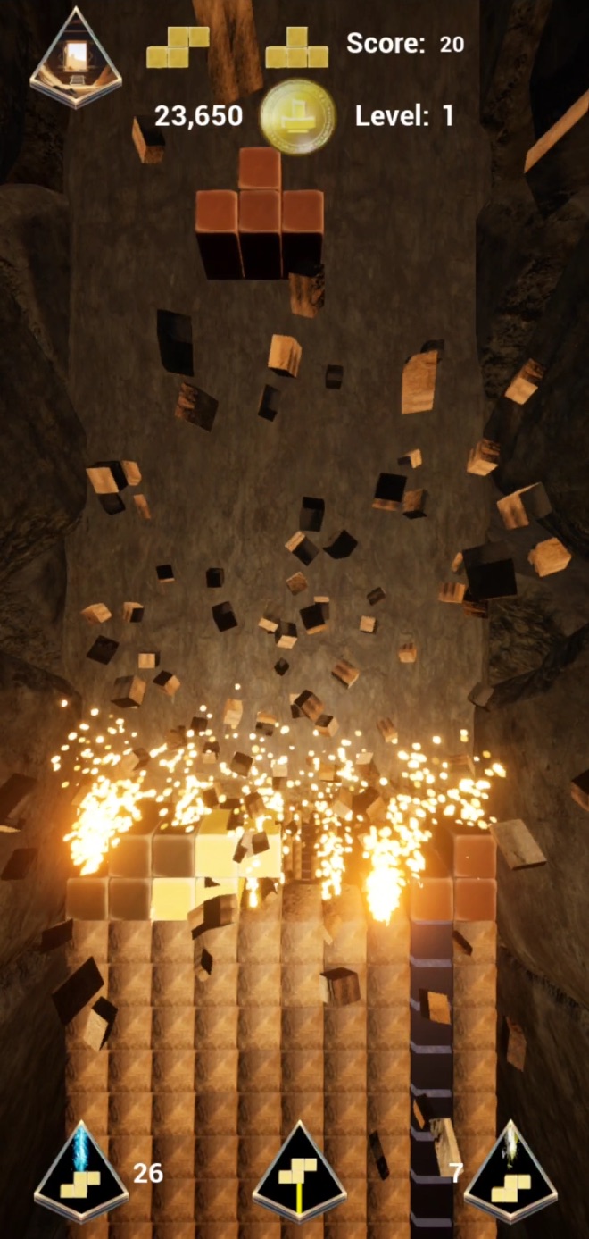 The walls of the pyramid are puzzling and can only be opened by the destruction of the bricks. That’s where the Tetris-inspired gameplay comes in!