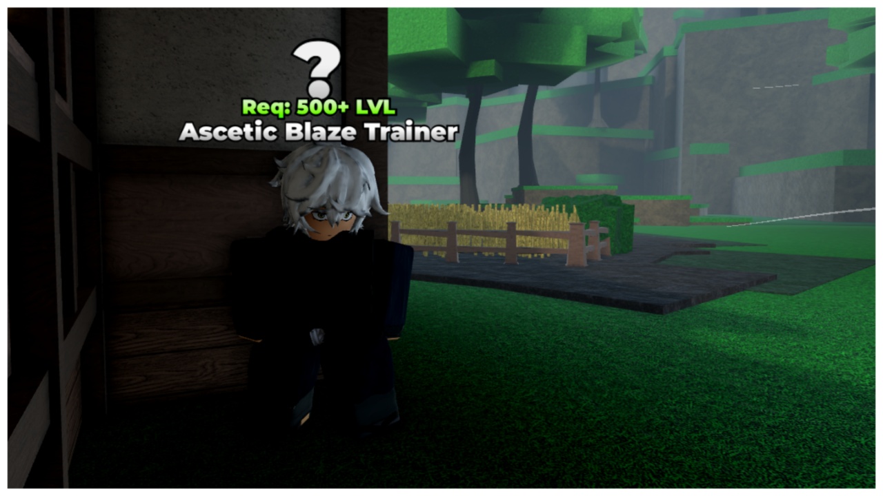 When you leave the main spawn village, head left immediately towards the two isolated buildings with small crop growth surrounding them. Behind the larger of the two buildings on the left, you’ll find the Ascetic Blaze NPC standing against the wall.